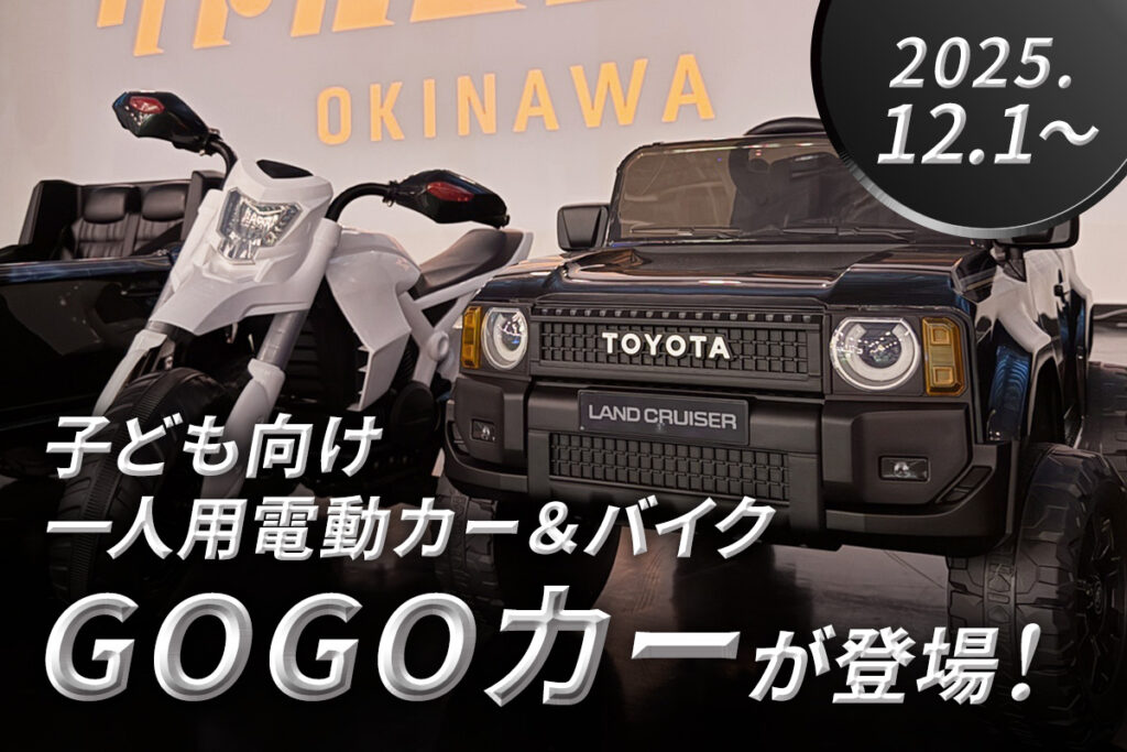 リトルユニバース沖縄の〈芝生広場〉に子ども向け一人用電動カー&バイク「GOGOカー」が12/1より期間限定で登場します!