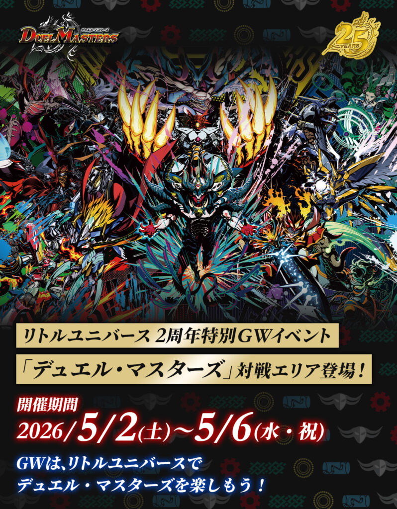 リトルユニバース2周年を記念して、GW期間限定で「デュエル・マスターズ」特別イベントを開催します。